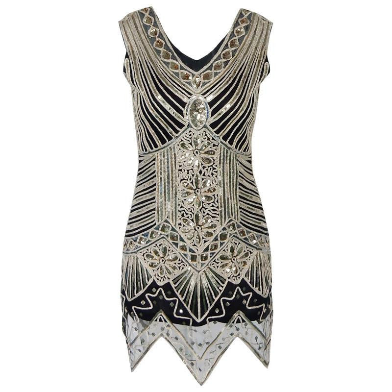 This Women's Black V Neck 1920s Embellished Gatsby Art Deco Sequin Flapper Party Fancy Dress is a true classic that embodies the spirit of the 1920s. With its sleeveless tank style and natural waistline, it offers a flattering cut that highlights your curves while allowing for easy movement. Whether you're attending a Gatsby-inspired soirée or a chic cocktail party, this dress is sure to make you feel confident and glamorous.