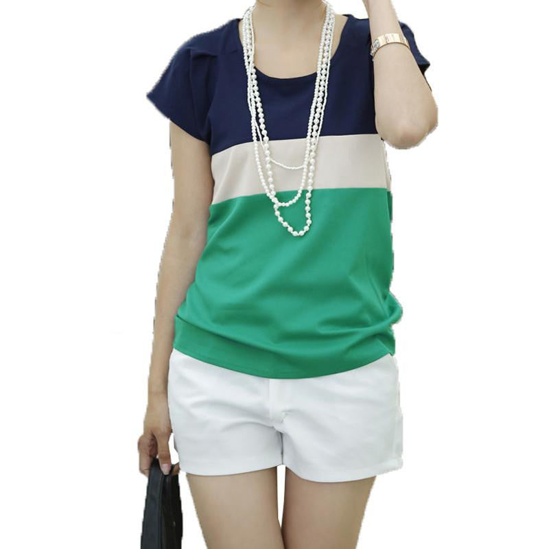 Introducing the perfect addition to your wardrobe: the Women's Blouses Fashion Casual Style Women's Blouse Tricolor Stitching Short-sleeved Women Shirts Woman Shirt Ladies Top. This stylish blouse is designed for the modern woman who values both comfort and fashion. Crafted from high-quality polyester and acrylic, this blouse offers a soft touch, ensuring you feel as good as you look.