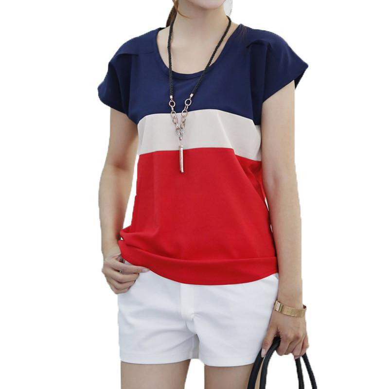 Featuring an eye-catching tricolor stitching pattern, this blouse stands out in any crowd. The batwing sleeves and O-neck collar add a trendy flair, making it suitable for various occasions, from casual outings to more formal gatherings. The regular clothing length ensures a flattering fit that pairs beautifully with your favorite jeans or skirts.