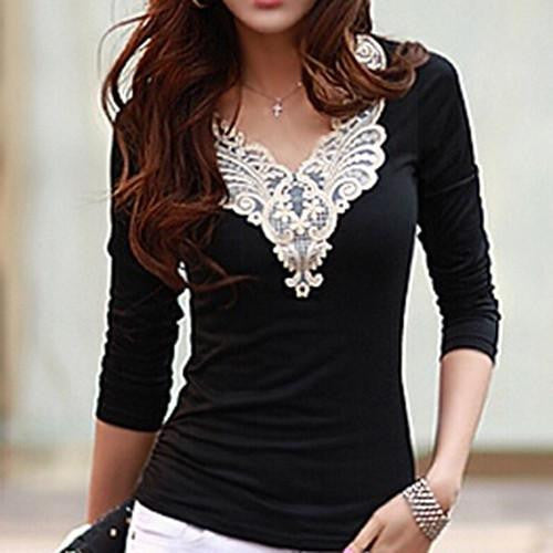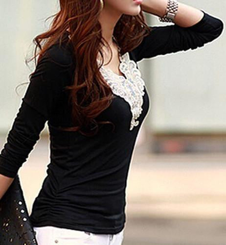 To maintain the beauty of your Women's Embroidery Lace Decoration Tops V Neck Long Sleeves Slim Cotton T-Shirt smt102, we recommend gentle hand washing and air drying. This will keep the lace and fabric in pristine condition, ensuring you enjoy this piece for seasons to come.