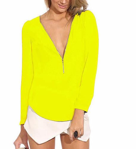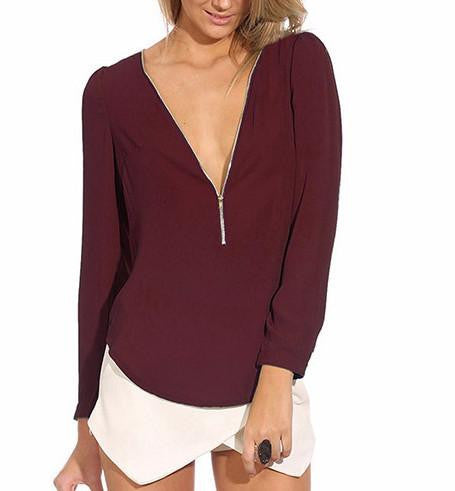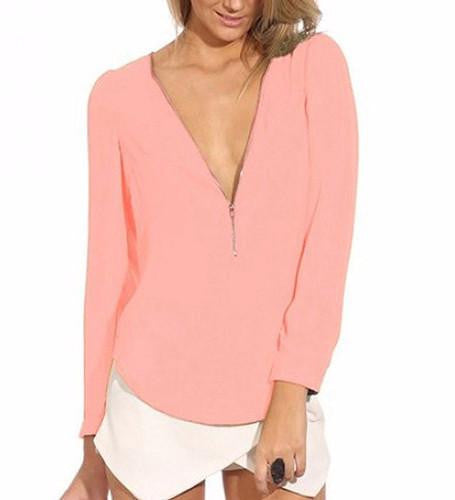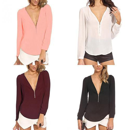 With its zipper detail adding a trendy twist, the Women's Fashion Casual V Neck Long Sleeve Zipper Tops Chiffon Blouses smt102 is not just a top; it's a statement. Pair it with your favorite jeans or a pencil skirt for a chic look that turns heads. Don't miss out on this versatile addition to your fashion collection!