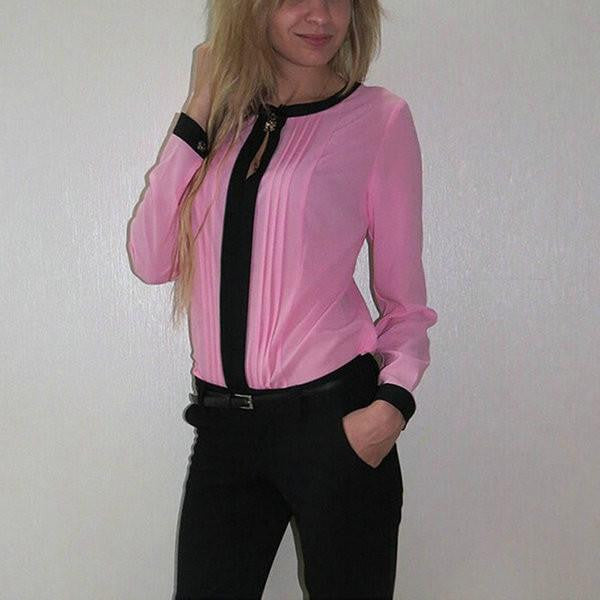The elegant chiffon ladies blouse is gorgeous. The pleated front adds to this sassy piece. The long sleeve blouse is your ideal buy for the office.