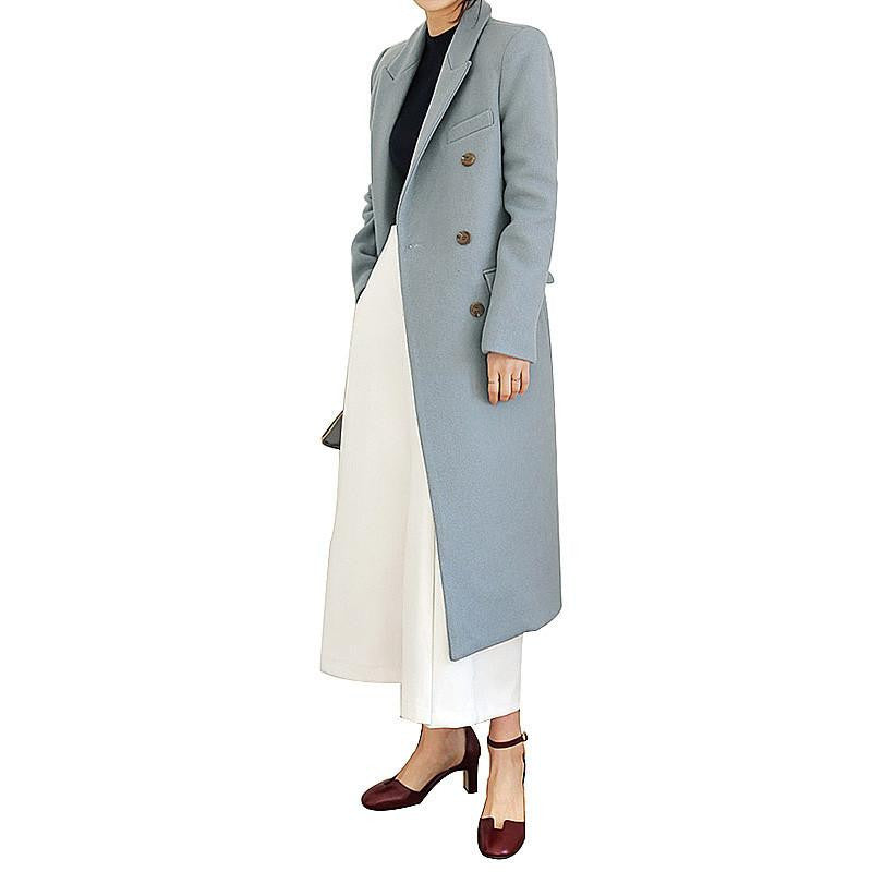 Step out in confidence and embrace the season with our Women's Long Wool Blends Fashion Korean Style Slim Blue Khaki Black Woolen Outweare Coats Coat Women. Perfect for layering over your favorite outfits, this coat is the ultimate combination of style and practicality, ensuring you stay on trend without sacrificing comfort.