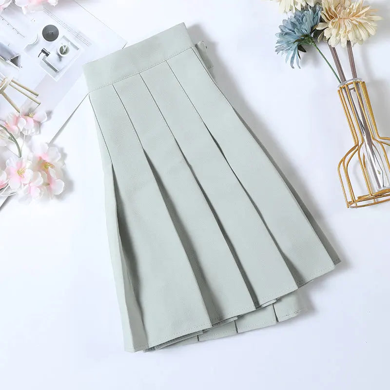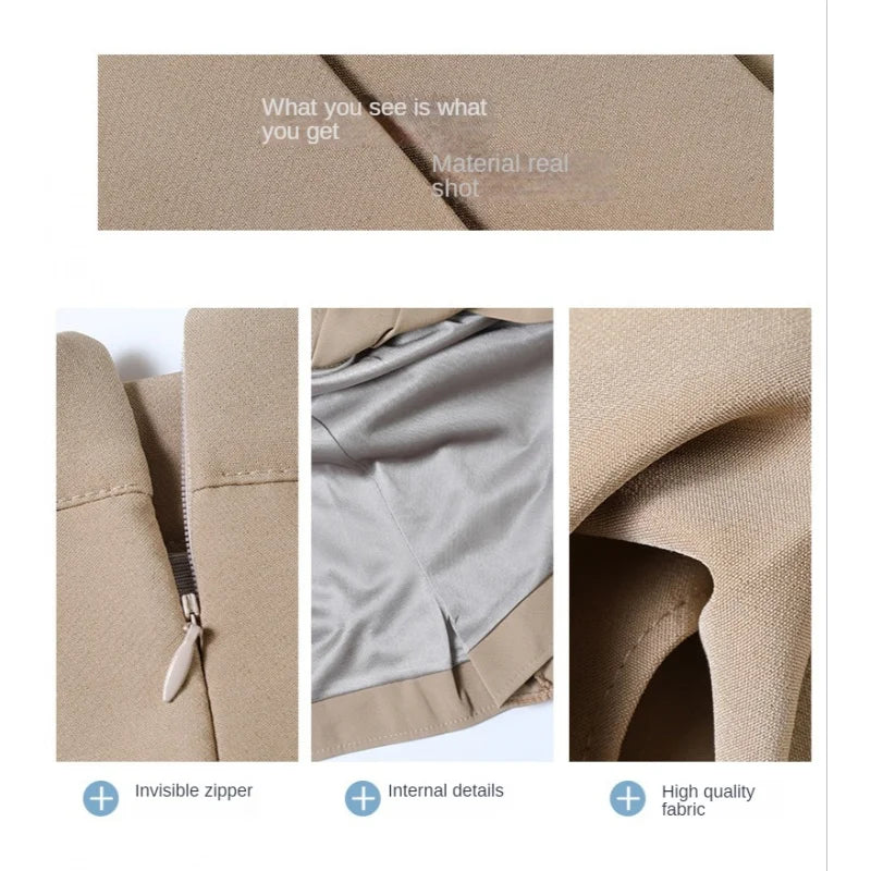 This A-line skirt is perfect for any season! With high waist and pleated design, it flatters your figure while the built-in shorts provide comfort and convenience. Made with Korea style and Y2K aesthetic, it's not just a skirt - it's a statement piece. Upgrade your wardrobe with this must-have item!