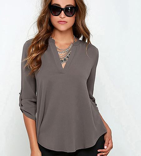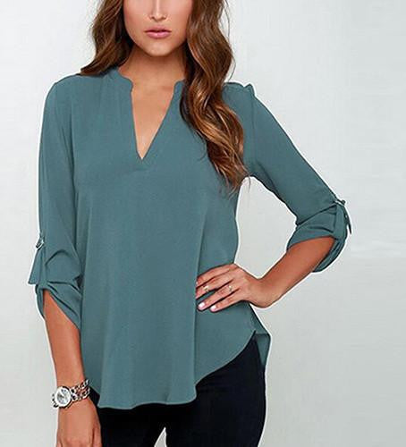 Whether you're going to work, attending a casual outing, or enjoying a weekend brunch, the Women's Stylish V Neck Rollable Sleeve Loose Solid Chiffon Blouse Shirt is your go-to choice. Its simple yet stylish design makes it easy to dress up or down, providing endless outfit possibilities.
