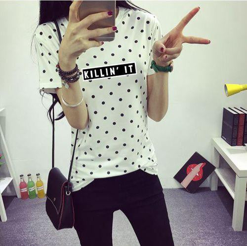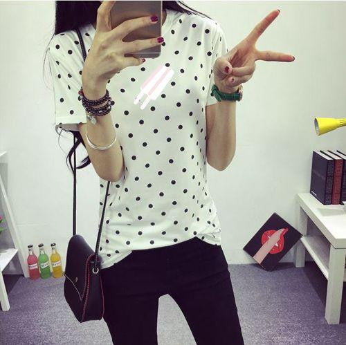 Whether you're heading out for a casual brunch, a day at the park, or just lounging at home, the Women's T-Shirt Clothes Girls Tee Shirt O-neck Polka Dotted Printed Tshirt Short Tops Bottoming Tops is your go-to choice. Its trendy design and comfortable fabric make it a must-have for every fashion-savvy woman.