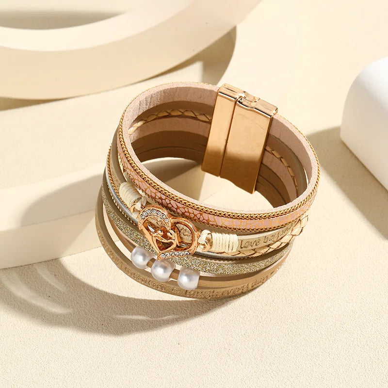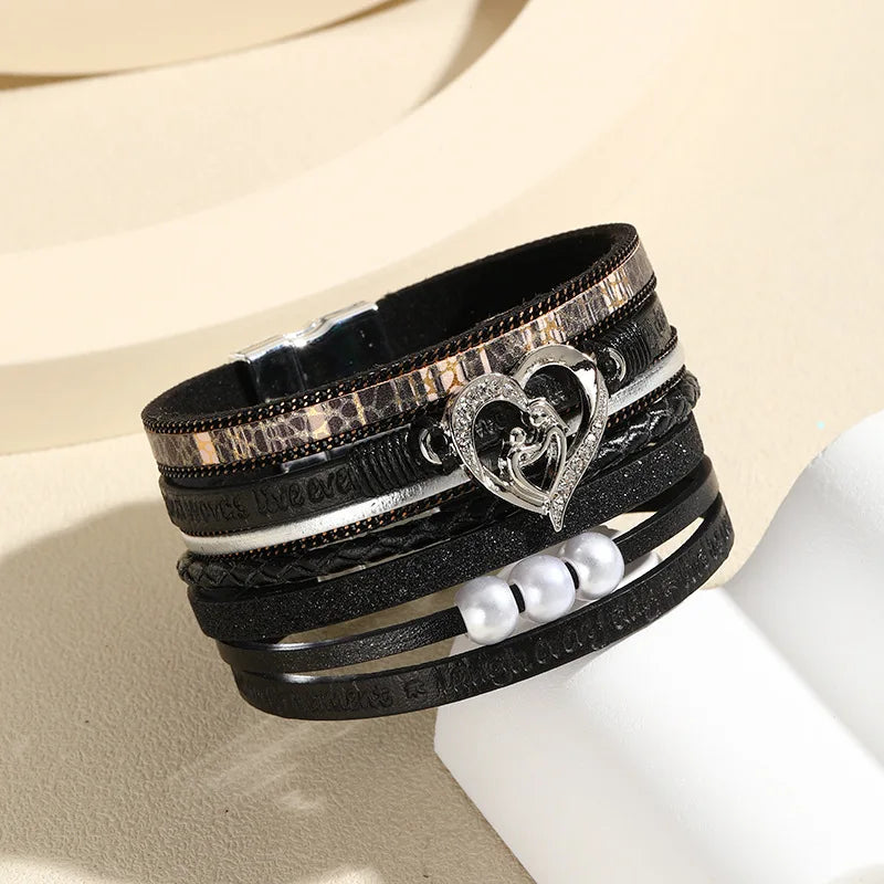 Step into luxury with this captivating Boho Style Multi Layer Leather Bracelet for Women Luxury Jewelry Cupid Heart Open Magnet Buckle Bracelet as a Holiday Gift, and let your style shine! Order now and experience the blend of fashion and elegance that this bracelet offers.