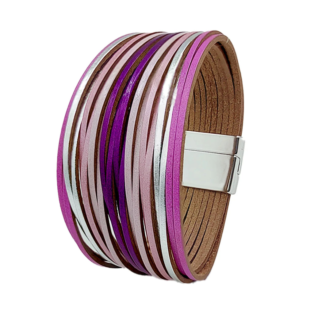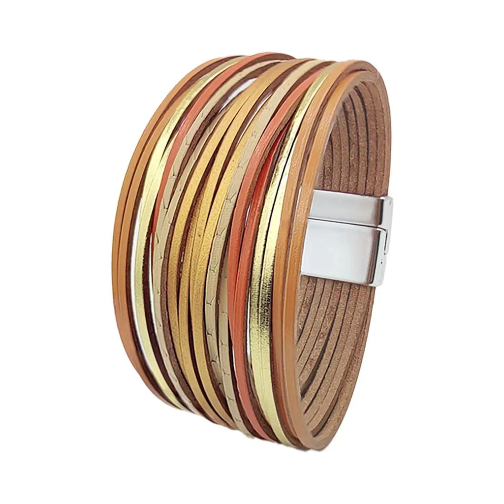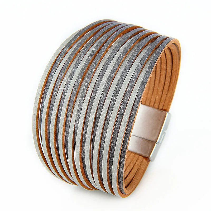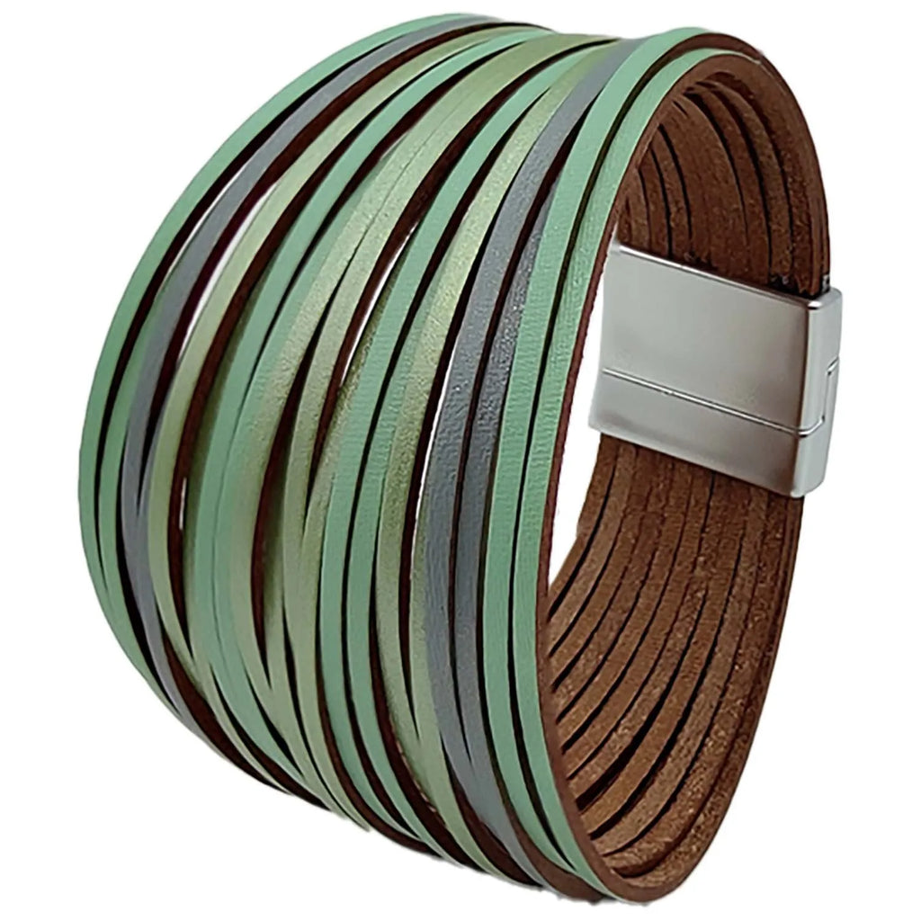 Wrap your wrist in style with our Mixed Color Multilayer Women Bracelet! Handmade with genuine leather and featuring a magnetic buckle, this wide bracelet adds a touch of bohemian charm to any outfit. Experience the effortless convenience and versatility of this must-have accessory.