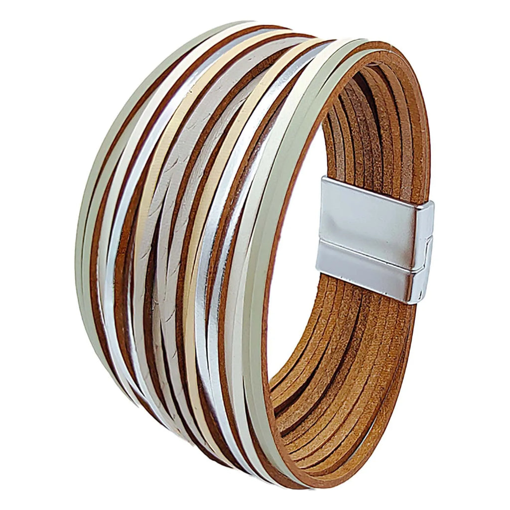 With its multilayer design, this wide bracelet is not only a fashion statement but also a versatile piece that can be worn on various occasions. The magnetic buckle provides ease of wear, allowing you to slip it on and off with minimal effort, making it ideal for the woman on the go.