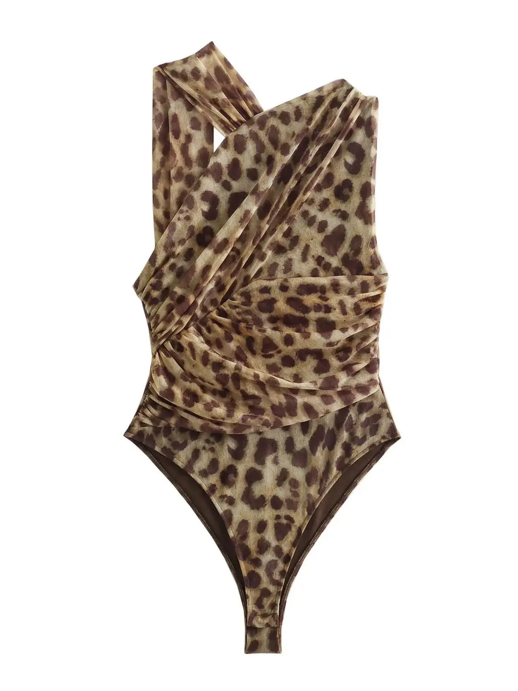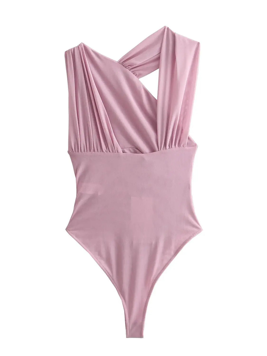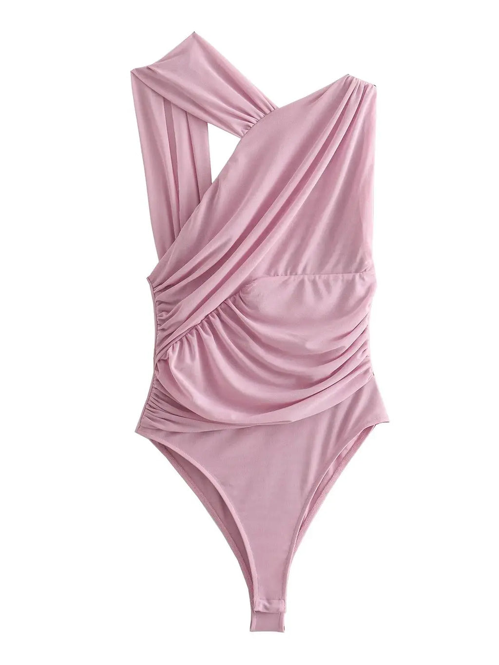 Elevate your wardrobe with the stunning Women's Asymmetric Draped Tulle bodysuit High Street Sleeveless Versatile Female Chie Bodysuit. This fashion-forward piece is designed for the modern woman who is not afraid to showcase her unique style. Crafted from high-quality polyester, this bodysuit features an asymmetric draped design that offers an effortlessly chic look, making it suitable for any occasion, from casual outings to glamorous events.