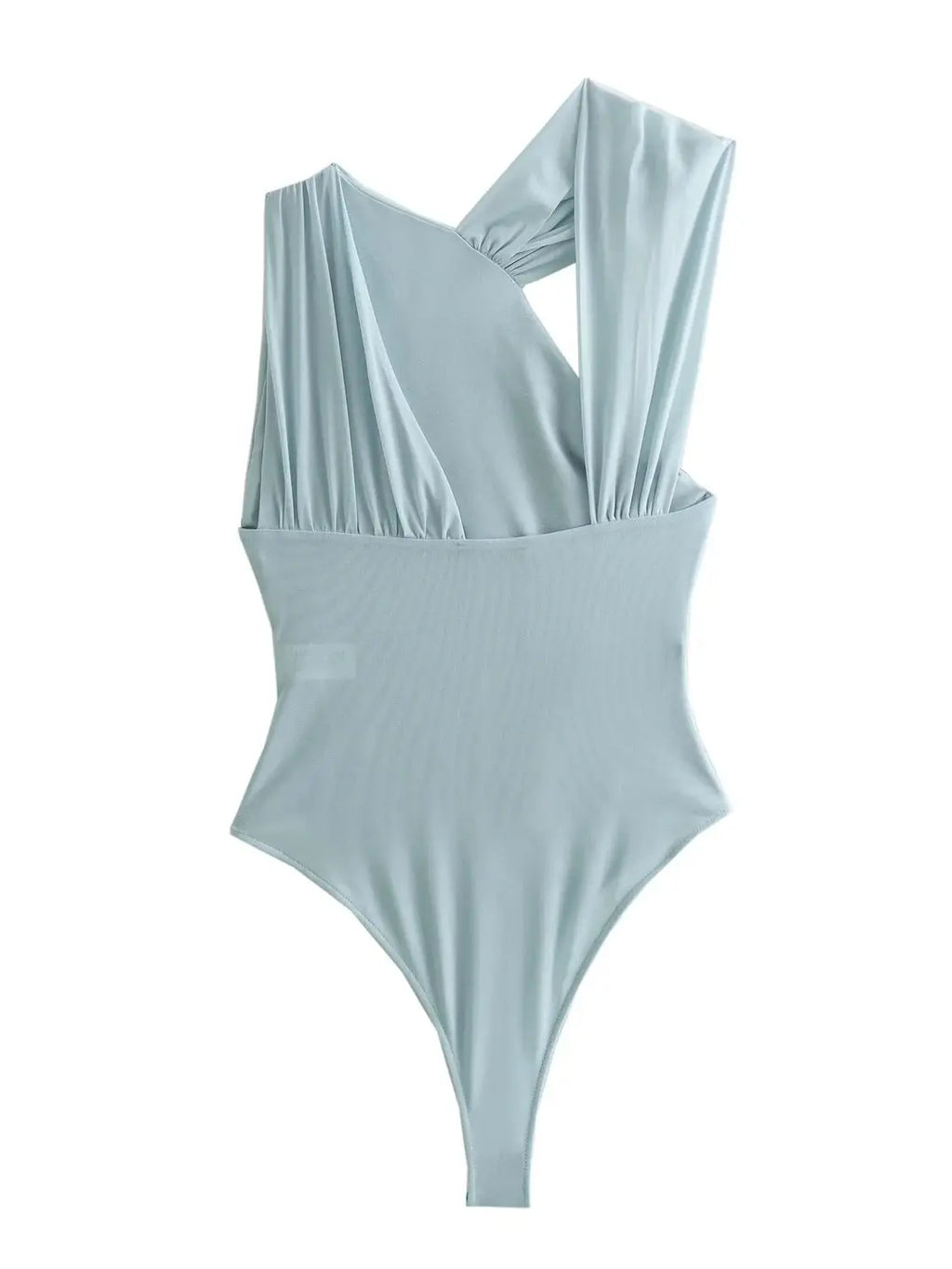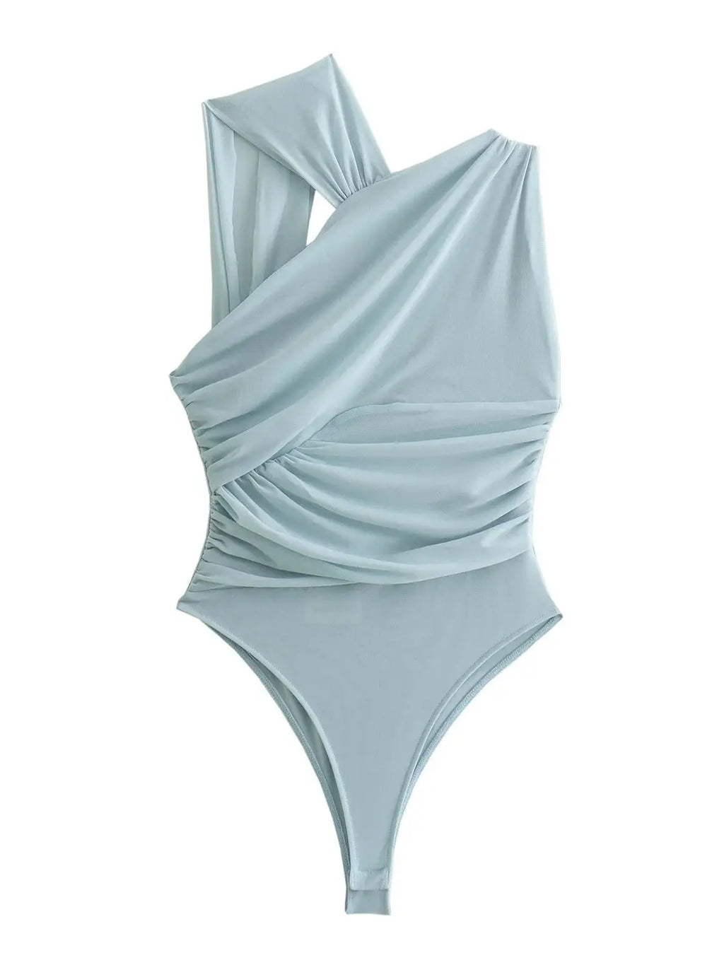 Whether you’re hitting the high streets or stepping onto the dance floor, the Women's Asymmetric Draped Tulle bodysuit High Street Sleeveless Versatile Female Chie Bodysuit will turn heads and make a lasting impression. Embrace your bold side and express your individuality with this stunning bodysuit that promises to be a staple in your fashion collection!