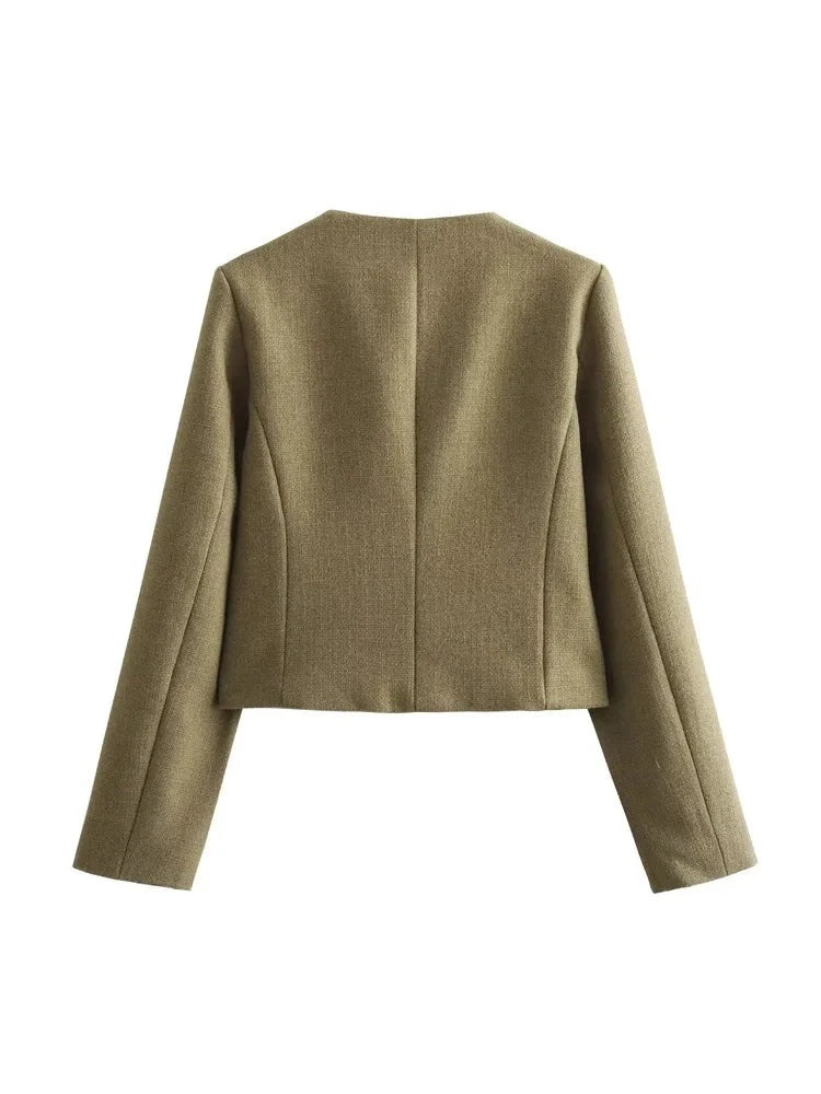 Elevate your wardrobe with the Flap Pocket Crop Jacket Women Vintage O Neck Long Sleeve Versatile Female Blazer. This stunning blazer combines timeless vintage charm with modern versatility, making it the perfect addition to any fashion-forward woman’s collection. The O-neck design and long sleeves offer a flattering silhouette that pairs beautifully with both casual and sophisticated outfits.