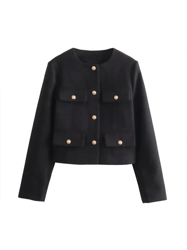 Get ready to turn heads with our Flap Pocket Crop Jacket! This vintage-inspired blazer features an O-neck design and long sleeves for a versatile look. And with its unique flap pocket detailing, you'll be sure to stand out in style. (Can we say "pocketful of compliments"?)