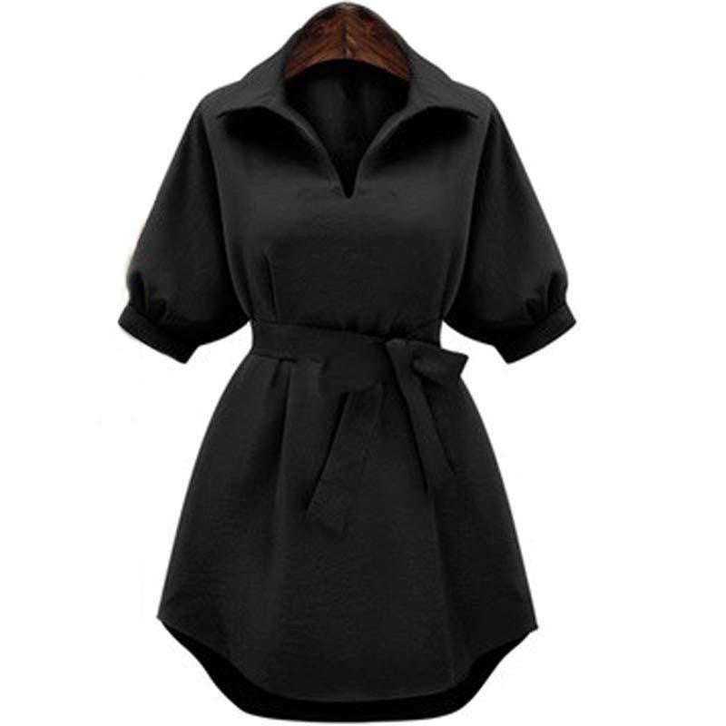 This oversized tunic shirt features a chic half sleeve design and charming sashes that accentuate your waist, providing a flattering silhouette for plus-size figures. Available in striking colors like red and blue, you will have no trouble finding the perfect match for your wardrobe.