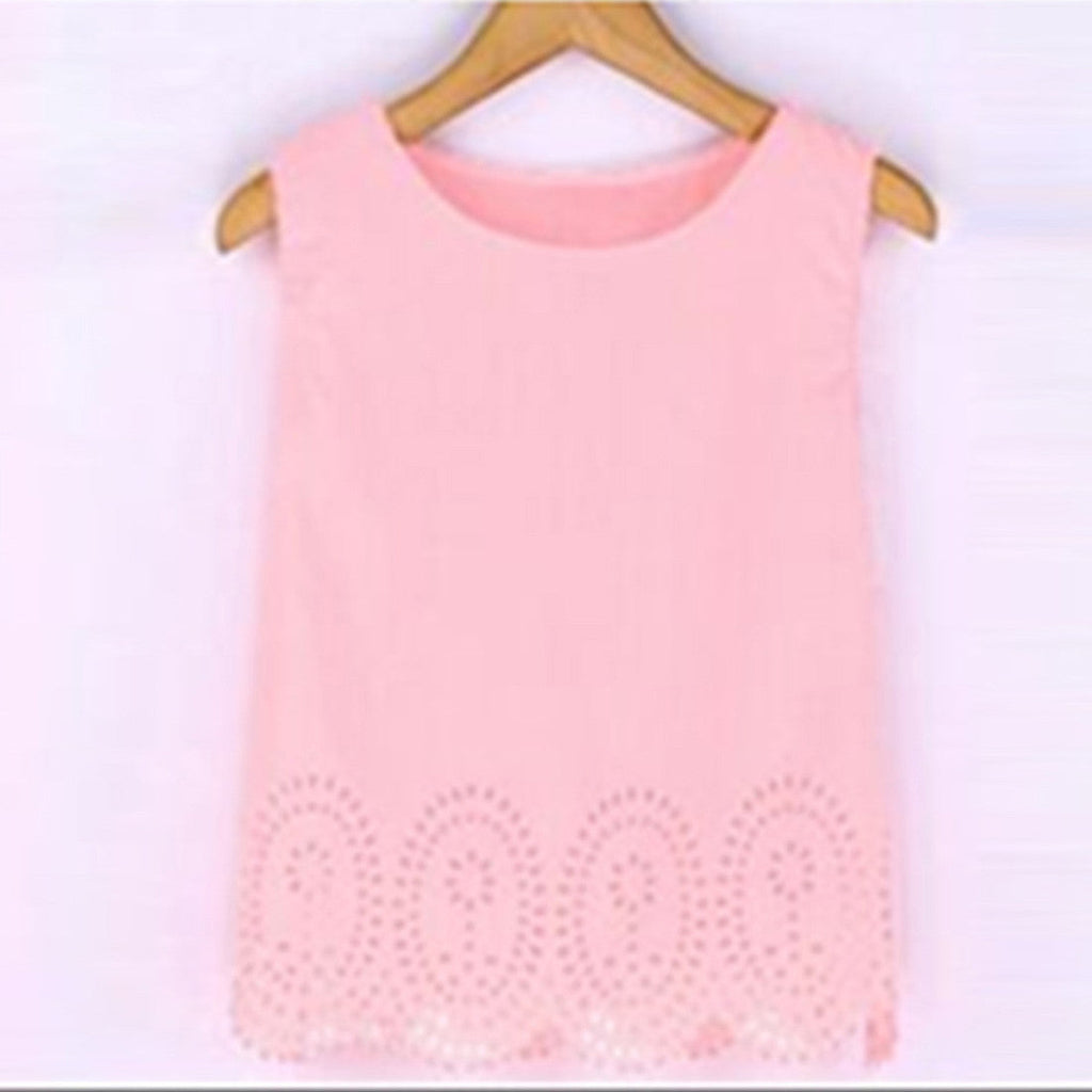 Introducing the Hollow Out Chiffon Shirt Sleeveless Women Blouse Plus Size Cropped Tank Top Casual 4XL, a stunning addition to your wardrobe that perfectly blends style and comfort. This exquisite blouse is designed to elevate your casual look while ensuring you feel at ease throughout the day. Whether you're heading out for a brunch or a casual day at work, this versatile piece will complement your outfit effortlessly.