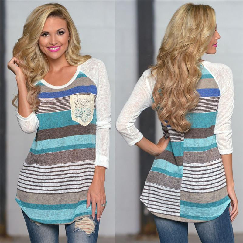 This Women Long Sleeve Shirt Stripes Tops Pocket O-neck Tops Shirt Blouse Female is designed for all-day wear. With a regular clothing length and comfortable sleeve style, it ensures you can move freely while looking chic. Available in multiple sizes, you can find the perfect fit that flatters your body shape.