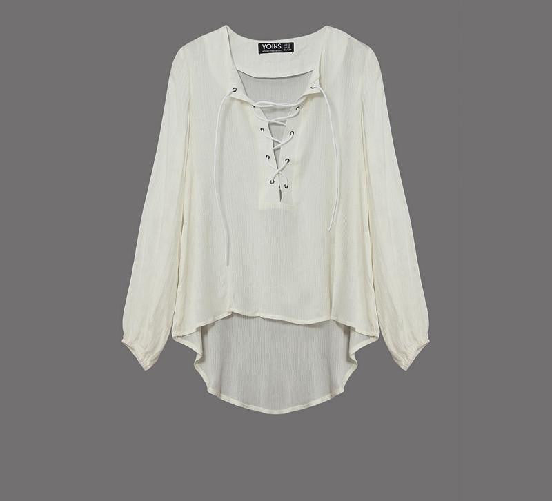Whether you're heading to brunch with friends, a casual office day, or a cozy evening at home, the Women White Lace Up V-neck Long Sleeve Blouse Tops Casual Loose Shirts offers the perfect blend of style and comfort. Pair it with your favorite jeans, a skirt, or shorts to create a look that suits your personality. Don’t miss out on this fashion-forward piece—add it to your collection today!