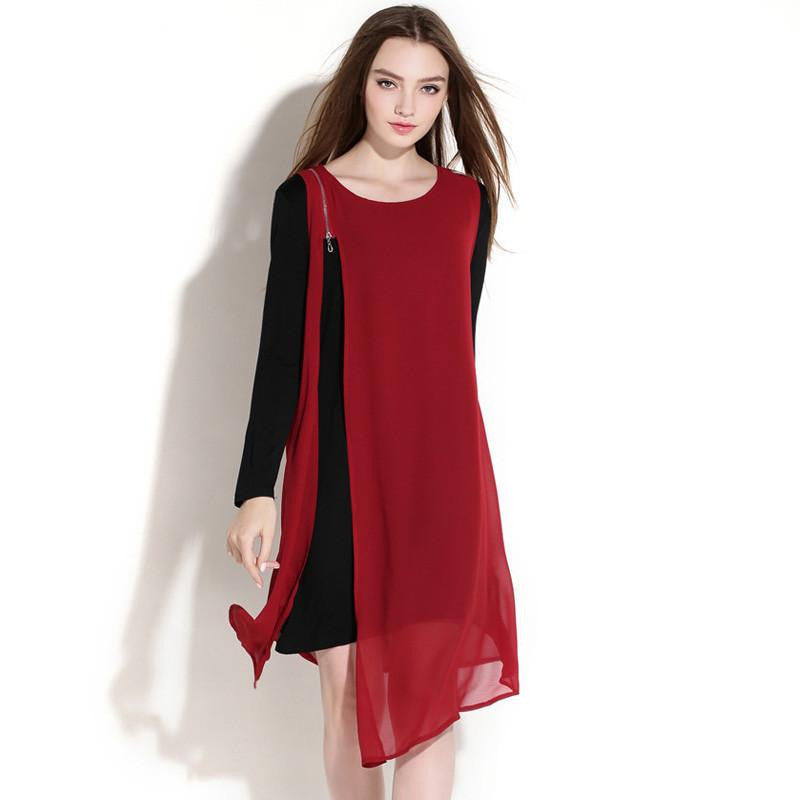 Don’t miss out on adding this breathtaking dress to your collection. Embrace the autumn season with confidence and grace in the YuooMuoo Fashion Chiffon Patchwork Women Asymmetrical Dress Brand Zipper Design Elegant Dress Autumn Big Size Women Clothes.