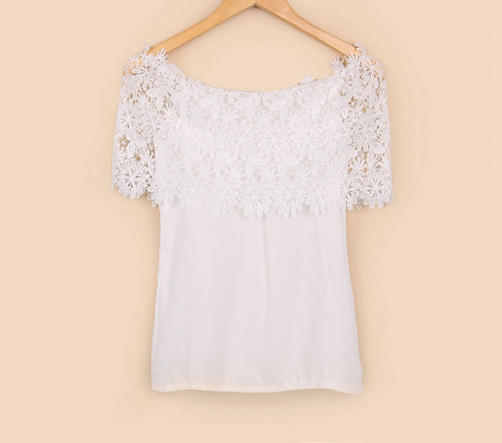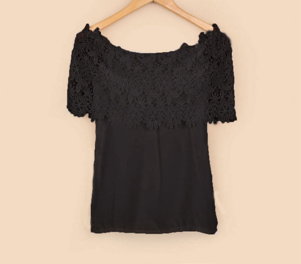 Elevate your style with our Women Chiffon Lace Stitching Tops Ladies Casual Off Shoulder Short Sleeve Blouse Shirts Plus Size. This stunning blouse is designed for the modern woman who loves to express herself through fashion. The elegant off-shoulder design paired with exquisite lace stitching creates a sophisticated look that is perfect for both casual outings and special occasions.