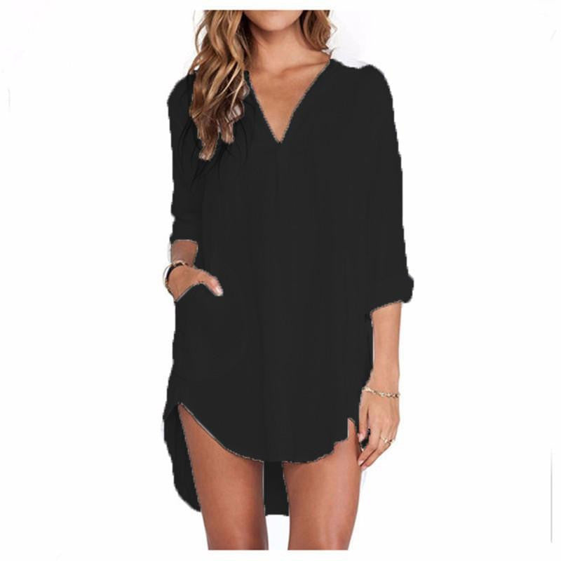 Whether you're heading to a brunch date, a casual workday, or enjoying a night out, this Women See Through Chiffon Shirts Dress Long Sleeve Pocket Casual Blouse Tops Plus Size XS-6XL will make you stand out. Pair it with leggings, jeans, or a skirt for versatile styling options.