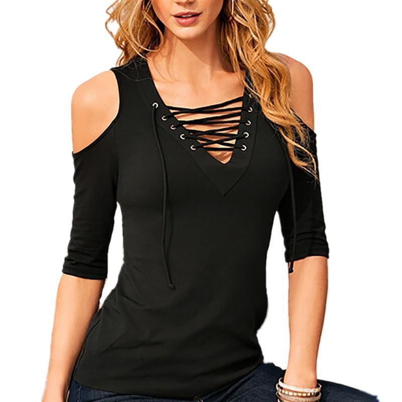 Introducing our stunning Women Casual Lace Up V neck Blouse Off Shoulder Half Sleeve Slim Tops Plus Size White Gray Shirts, the perfect addition to your wardrobe for any occasion. Designed with both style and comfort in mind, this blouse features a fashionable off-shoulder design and a flattering V-neckline that beautifully accentuates your figure. Whether you're heading to a casual brunch or a night out, this versatile top will make you feel confident and chic.