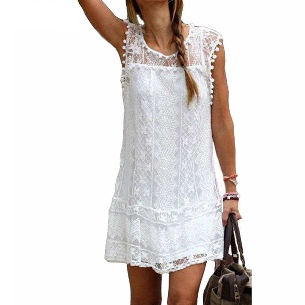 Discover the ultimate in summer style with our Summer Elegant Women Casual Solid Short Sleeve Slim Lace Mini Dress Tops Ladies White Dress Plus Size. This stunning piece is designed to keep you looking chic and feeling comfortable during those warm summer days. Made from a premium blend of polyester and cotton, this dress features a soft, breathable fabric that drapes beautifully, allowing you to move with ease.