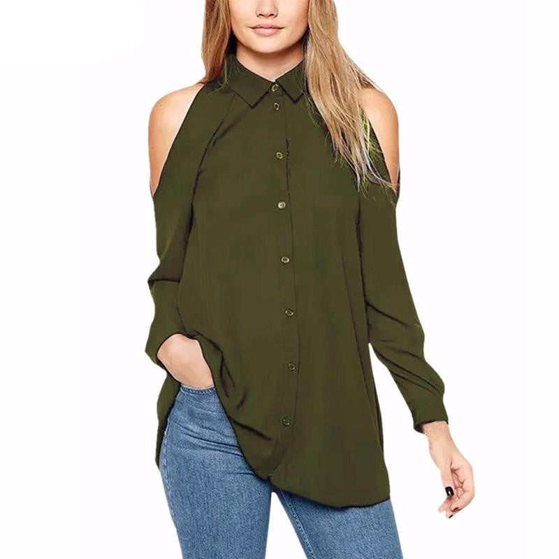 This Women Off Long Shirts Chiffon Tops Turn Down Collar Long Sleeve Casual Plus Size Blouse is designed to elevate your wardrobe with its solid pattern and elegant styling. The button decoration adds a subtle yet stylish detail, making it a must-have for any fashion enthusiast. Whether you're dressing up for a brunch or heading to the office, this blouse will keep you looking polished and feel comfortable.